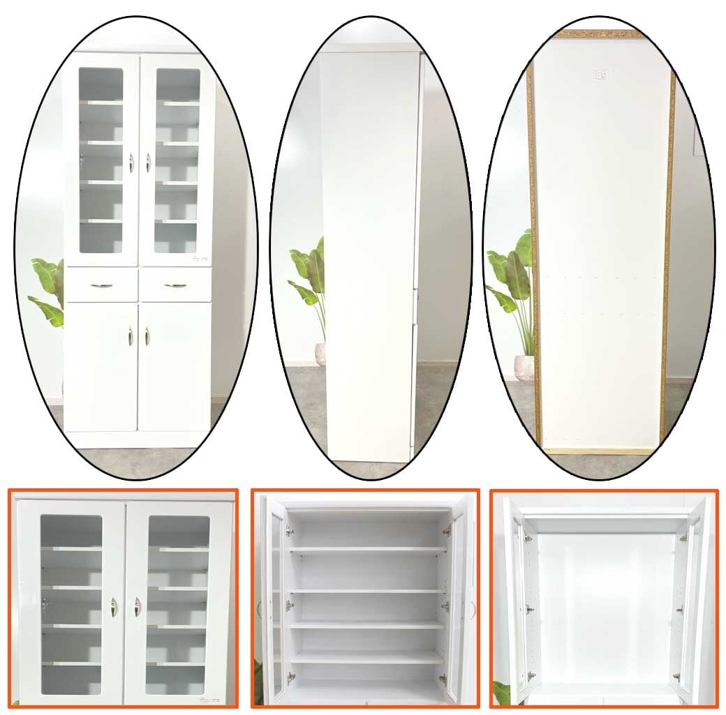 #60DBハイグロスシートダイニングボード #食器棚 #完成品 #キッチンボード #日本製 #大川家具 #ホワイト #ハイグロス #国産品 #おしゃれ #収納 #引き戸