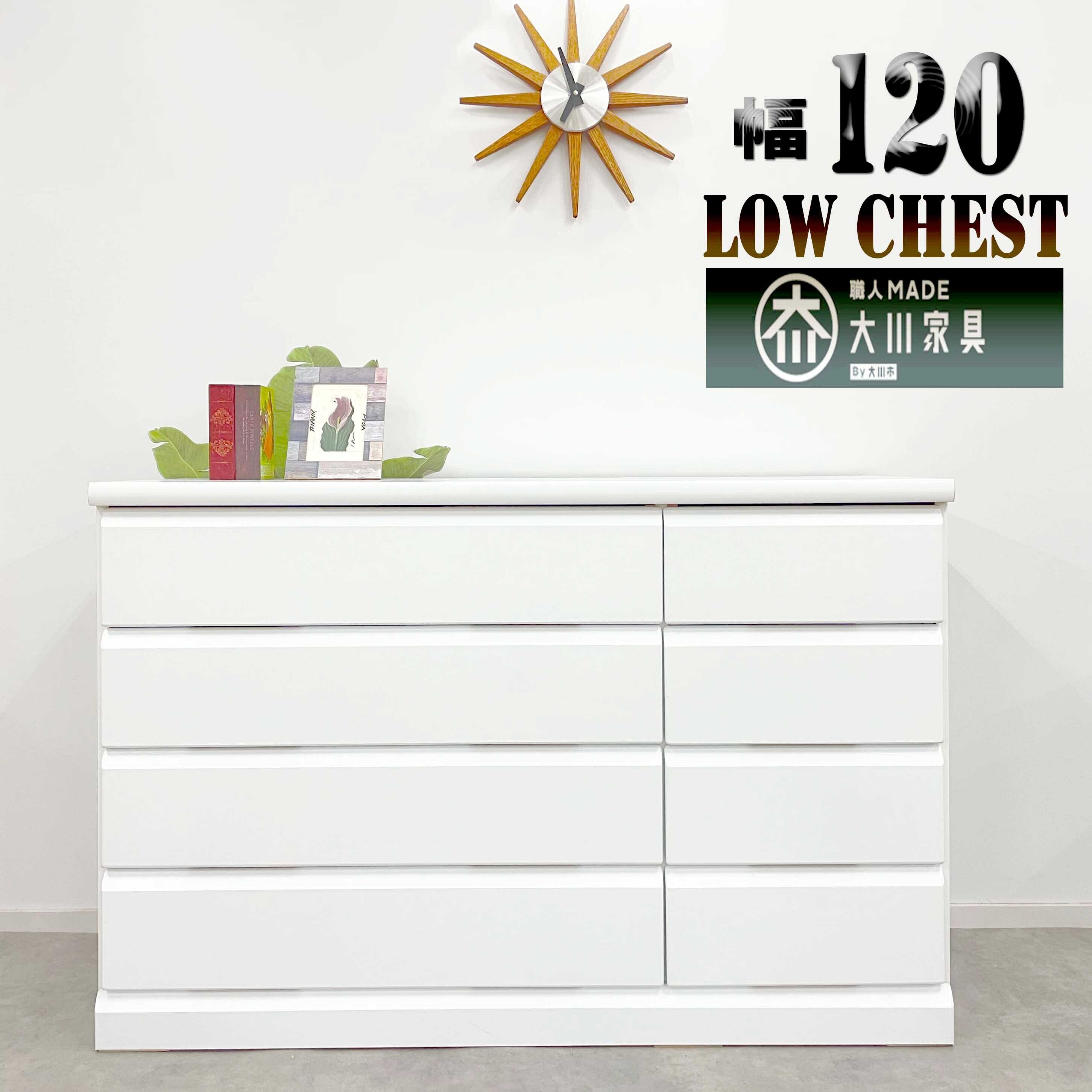 リビング収納 ウッドチェスト ワイドチェスト チェスト 120センチ ホワイト 国産 日本製 大川家具 完成品 激安 高級感 ホワイト 北欧