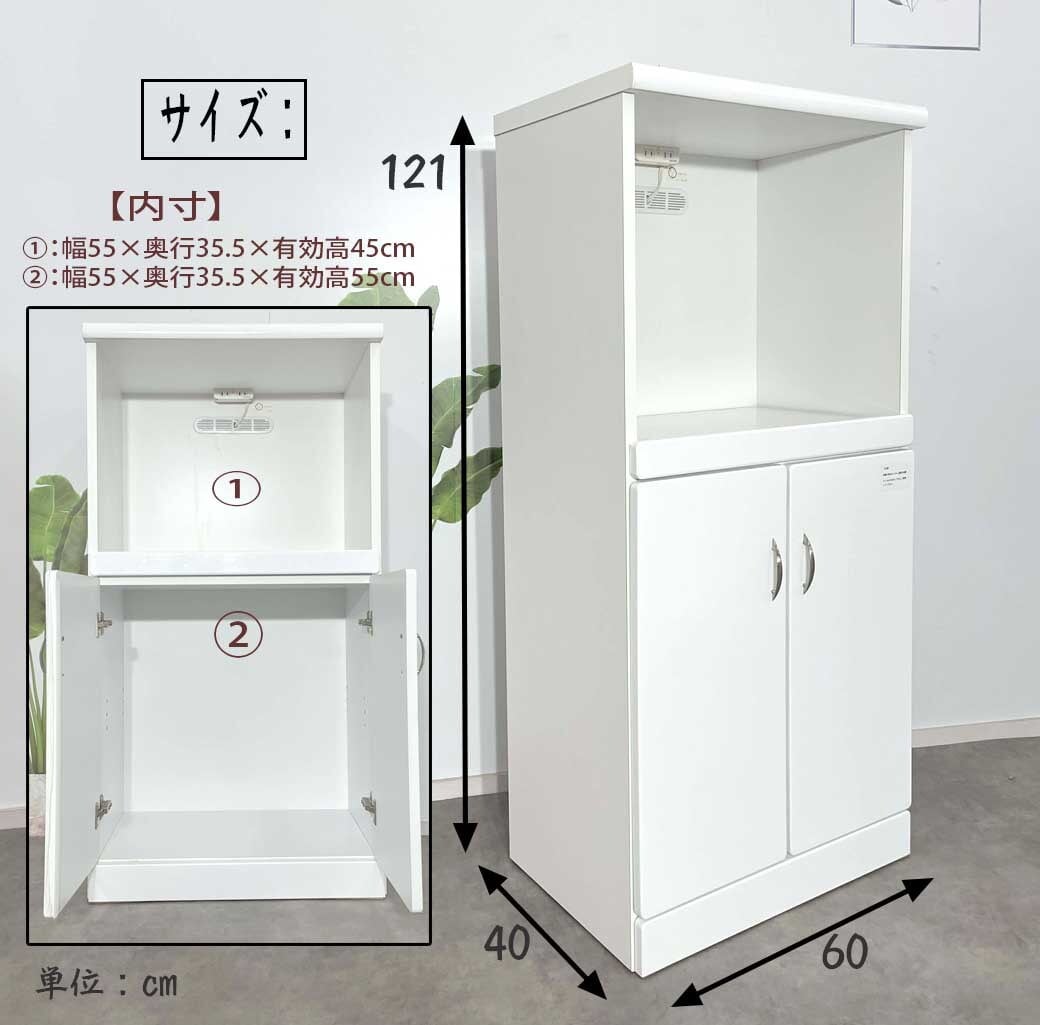 レンジ台・ボードキッチンボード 完成品 レンジ台 60幅 コンセント付き 収納 キッチン収納 棚 食器 一人暮らし 高さ121 台所収納 白 ホワイト キッチンカウンター 引き出し シンプル ハイタイプ 国産