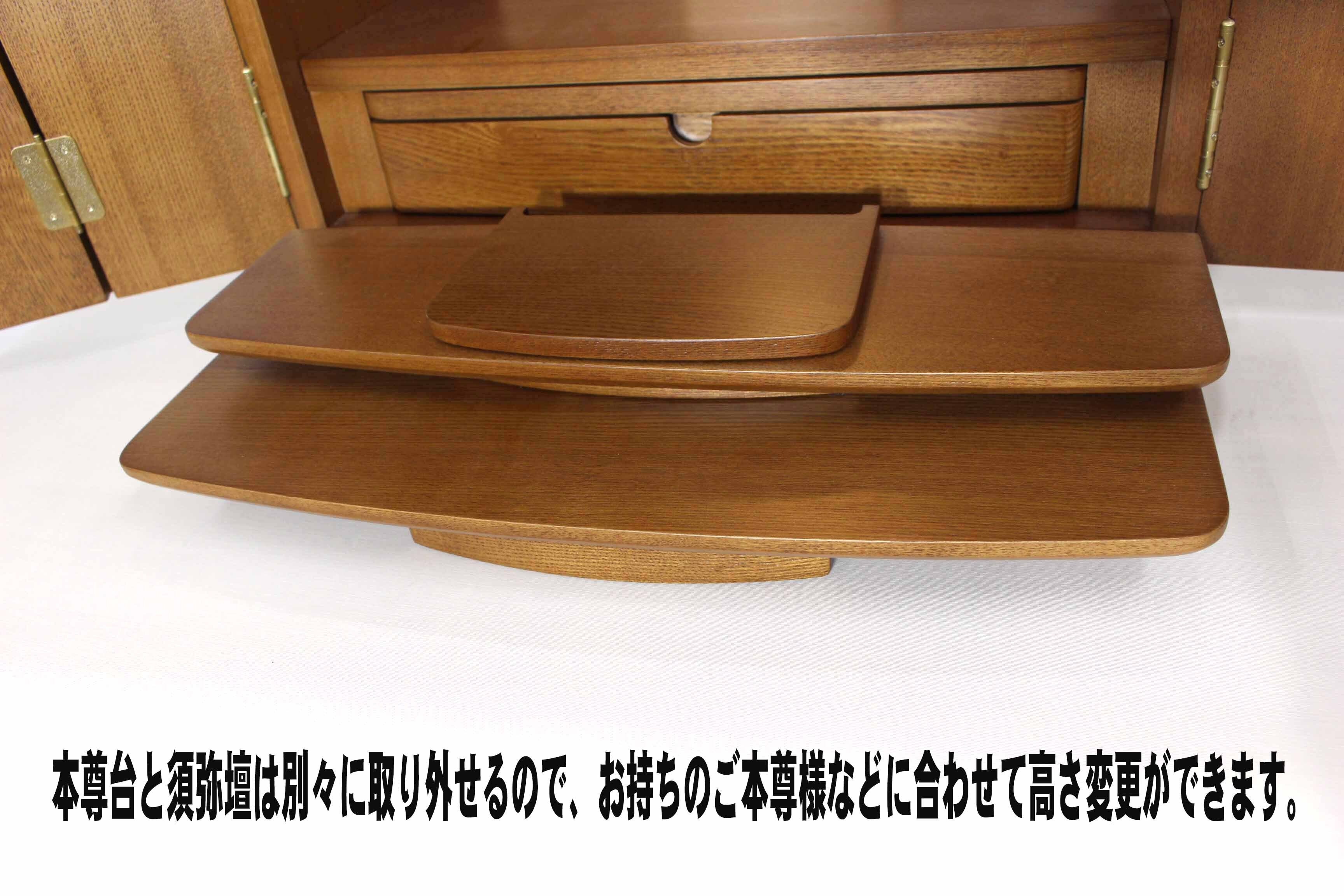 ワイドなデザインで内陣の最大幅は45.5cm!お部屋を問わずに映える、自然で美しい木目からは温かみを感じます